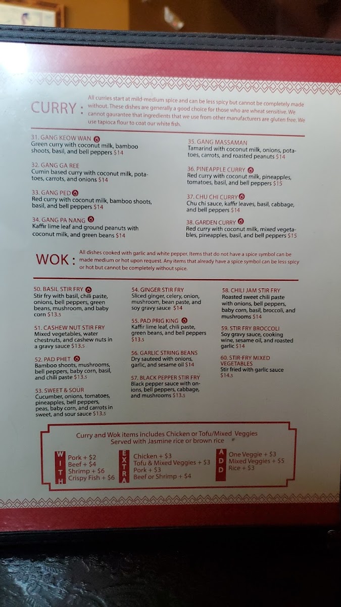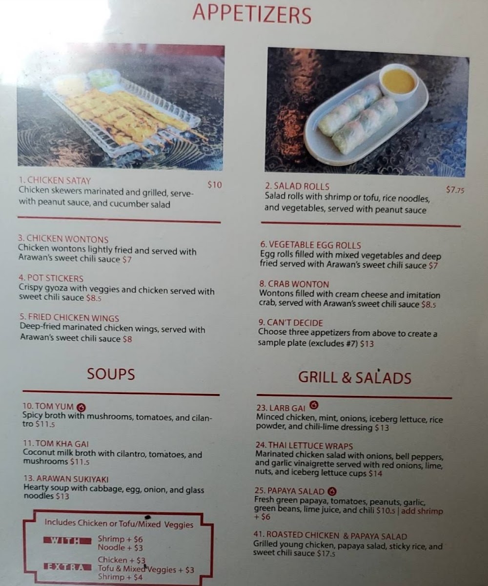 If you're craving authentic Thai flavors, the Arawan Thai Cuisine Menu is a must-try. Located at 9610 SE 82nd Ave D, Happy Valley, OR, this spot is perfect for anyone looking to dive into a variety of Thai dishes, from spicy curries to savory stir-fries. The menu offers a wonderful selection, highlighting the rich, bold flavors of Thai cuisine, with something for everyone-whether you prefer something tangy, sweet, or with a bit of heat. For a truly satisfying meal, don't miss out on their fresh ingredients and perfectly balanced spices that make each dish stand out. Whether you're here for a casual bite or a special treat, Arawan Thai Cuisine delivers a memorable dining experience with every meal.